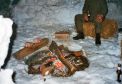 | Das perfekte Wetter für's Elefantentreffen 2006, Minusgrade und Schnee ohne Ende. | nach 4 Stunden Schneeschippen endlich Lagerfeuer. | Die Goldproiler ausgepackt .. | ...und im Fegefeuer gegrillt. |